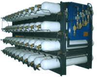 | The system is used to store compressed high pressure natural gas to save filling time. The system has three groups for high pressure.middle pressure and low pressure.The gas may be stored in two ways;cylinder cascades and gas well. |