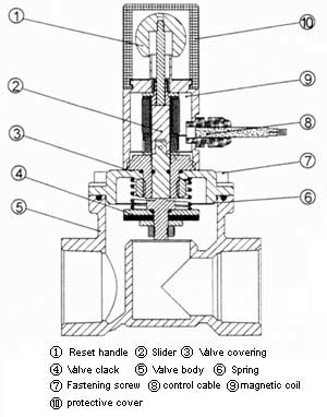 3. When shutting off the valve dynamoelectrically, incorrect connection of electrical source, such as false polarity connection, false voltage loading and long-time electrification, should be avoided by all means lest the electromagnetic coil be damaged.