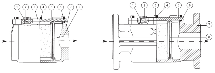 ⑥法兰接口:DIN.2633-UNI2229 PN.16 DN25 - DN150