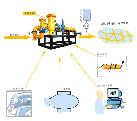 ◆ 调压站内可以配置高精度过滤器,过滤进度可以达到lOum,其操作简单、安全、高效、维护方便;