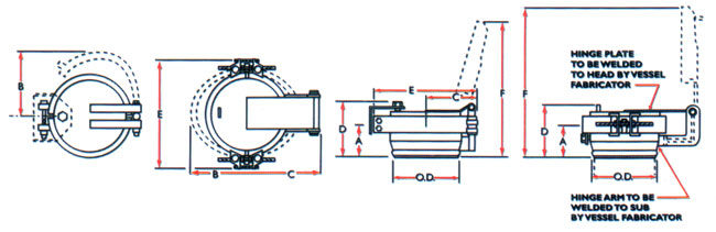 QOC快开盲板由长颈段、盲板盖、两瓣卡箍以及附件组成。无论立式还是卧式的快开盲板均能快速、方便地被开启和关闭。安全联锁装置保证了快开盲板在不带压的情况下才能开启,并且关上联锁装置后才能升压。