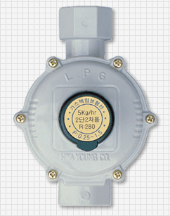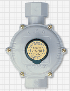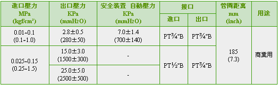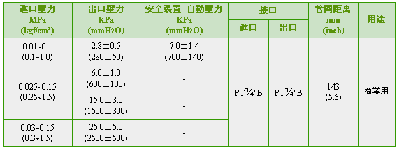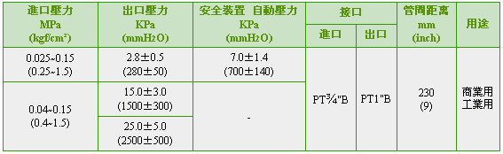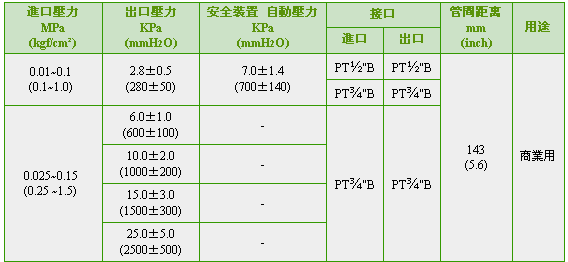 这是装在2级减压式的2级端使用的调压器。可把进口压力0.25-1.5kgf/cm2降到适当的燃烧压力的2级减压2级调压器。