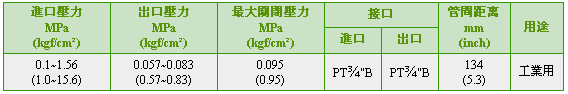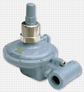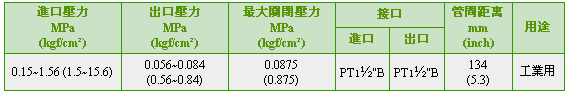 此一调压器是安装在2级减压2级调压器的在1级端使用的调压器,可把进口压力1.0-15.6kgf/cm4 0.57-0.83kgf/cm4
