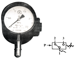 [例1]选用序号10控制器,将设定值锁紧螺钉旋松,要求压力上升至0.5MPa(上切换值)发出触点信号,其操作步骤如下: