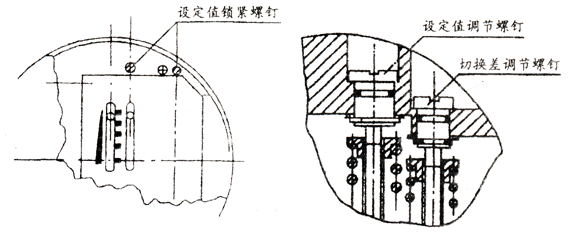 2.4 再逆时针旋动切换差调节螺杆,使切换差由小开始增大,直至压力上升至0.8MPa触点动作。